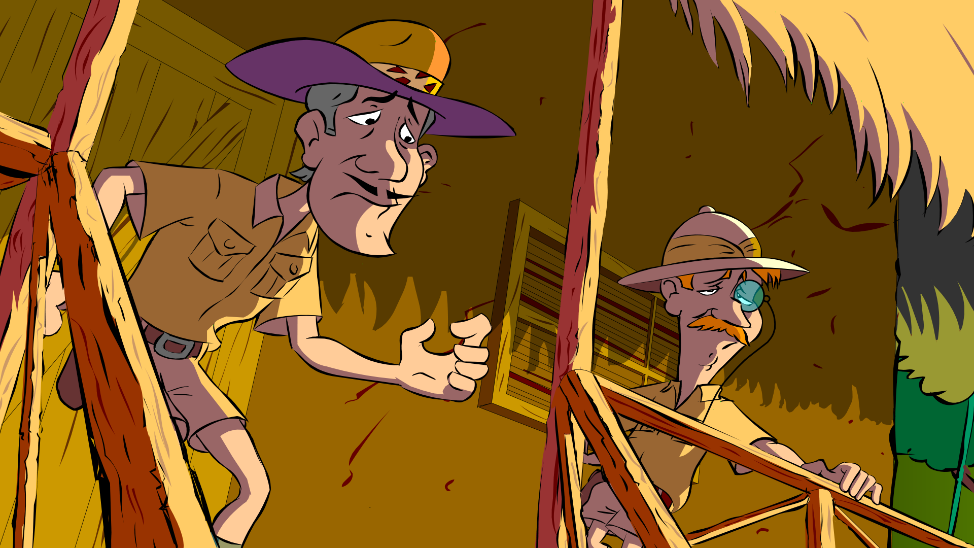 Having enjoyed watching many exotic B Movies I find that’s where much of my inspiration comes from. Carstairs and Wilkins are characters I had developed a while ago and I thought they would be perfect for this project. The characters were designed and animated in traditional pencil, applying all the usual production steps. They were then scanned and imported into Flash.